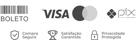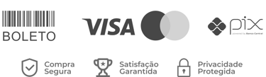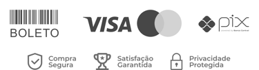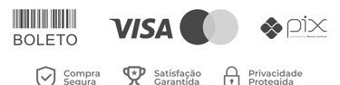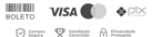 Cartão de crédito, boleto bancário, PayPal e PIX.