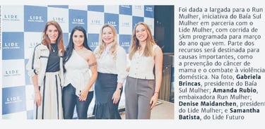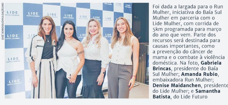 Samantha é uma das embaixadoras do movimento RUN Mulher, iniciativa do Baía Sul Mulher para incentivar mulheres a buscarem estilos de vida saudáveis e saírem do sedentarismo.